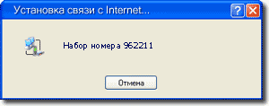 После набора номера и проверки имени пользователя и пароля, в углу